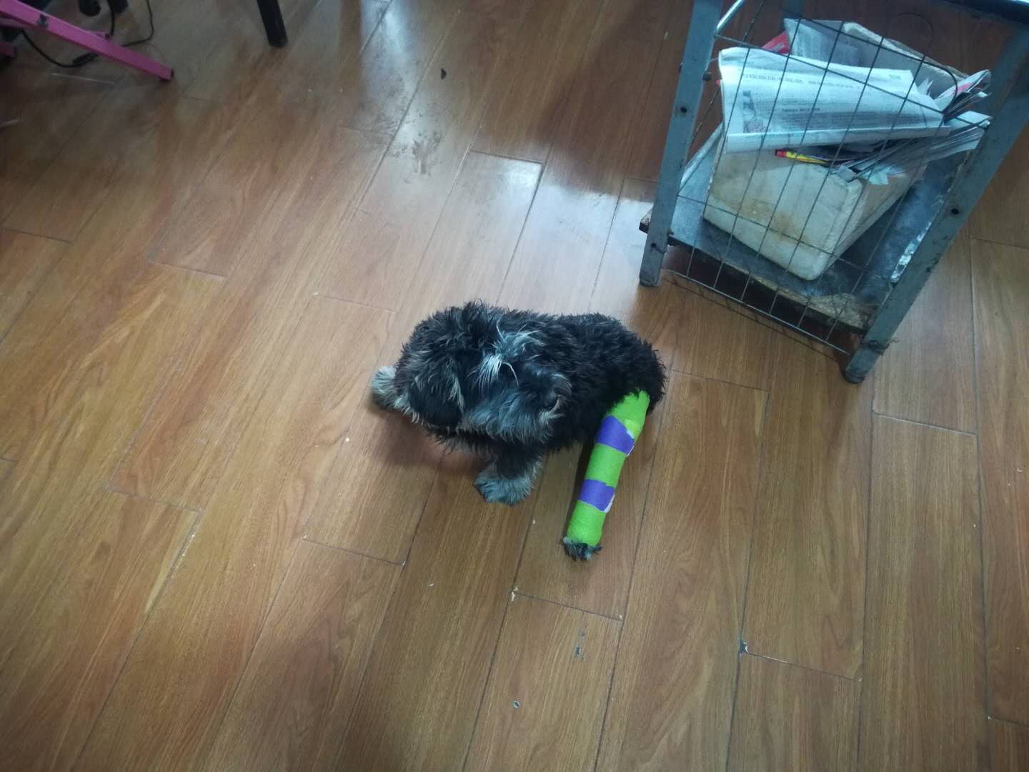可愛的雪納瑞由于主人一時大意,在抱時失手落下導致腿骨骨折,在我院醫生的用心呵護后固定成功,希望它早日康復。