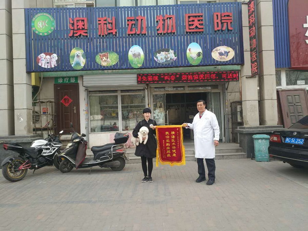 盛唐***尊比熊妞妞神經(jīng)炎瘸腿,小便失禁后腿瘸腿不能正常行走,經(jīng)趙院長治療已經(jīng)痊愈,主人送錦旗寫感謝信