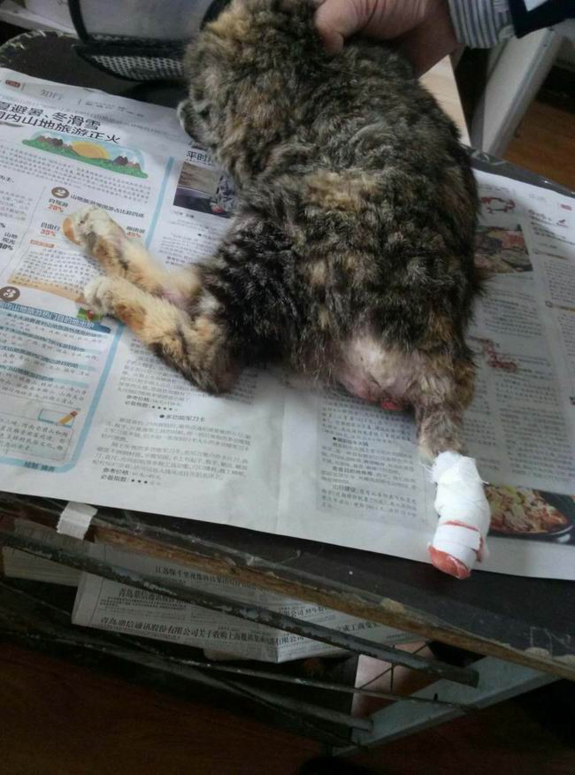 呼和浩特市流浪貓墜井,被路過愛心人士發現,救出后發現小貓后肢癱瘓無法站立、大小便失禁。小貓的事后被洛陽愛心人士樊女士得知,來我院咨詢趙院長,得知趙院長有治療此病方面經驗,就驅車千里將貓從呼和浩特接回洛陽治療,經趙院長檢查治療,及我院醫護人員細心護理,治療3天小貓就能明顯站起來,大小便失禁問題也得到改善。