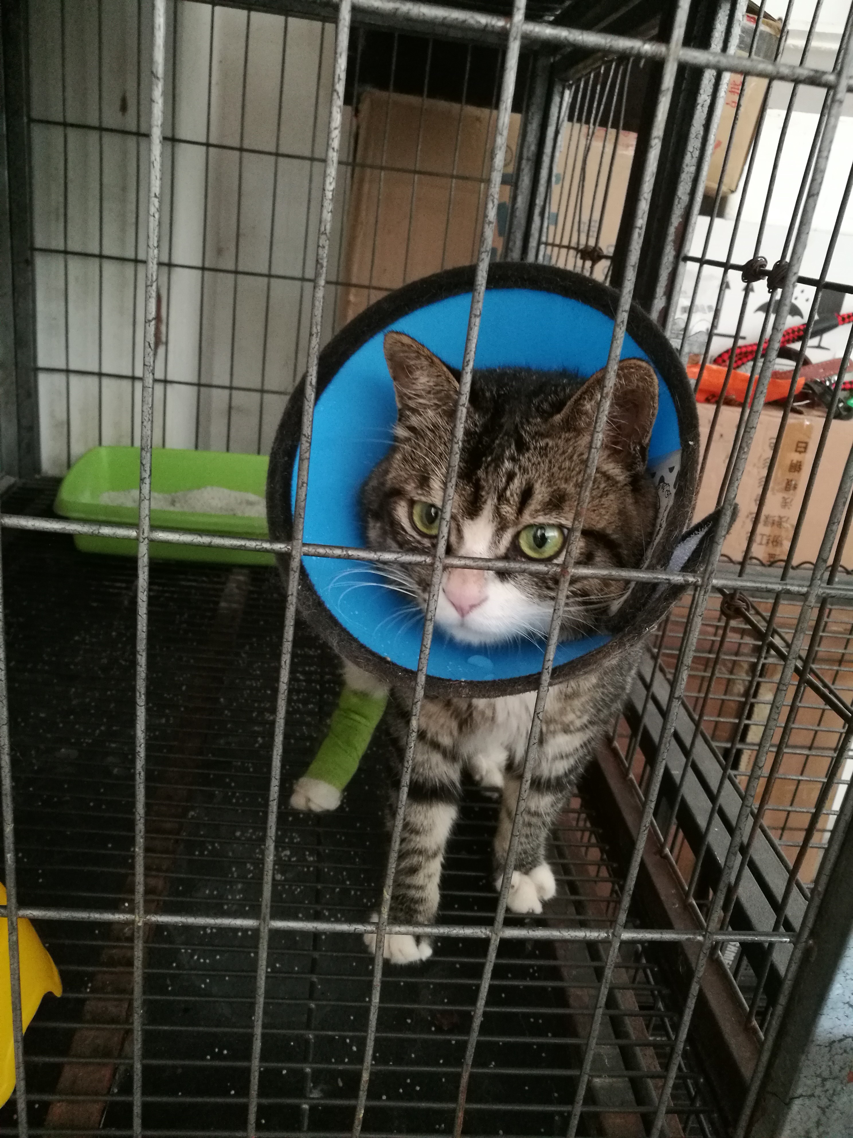 流浪的小虎平常被愛心人士劉醫生救助飼喂,有天發現小虎右腿不能著地,送來我院經檢查發現小虎右腿膝關節有一處潰瘍感染嚴重,右腿腫脹,刺破發現里面大量膿液。小虎經過幾次治療現已痊愈。